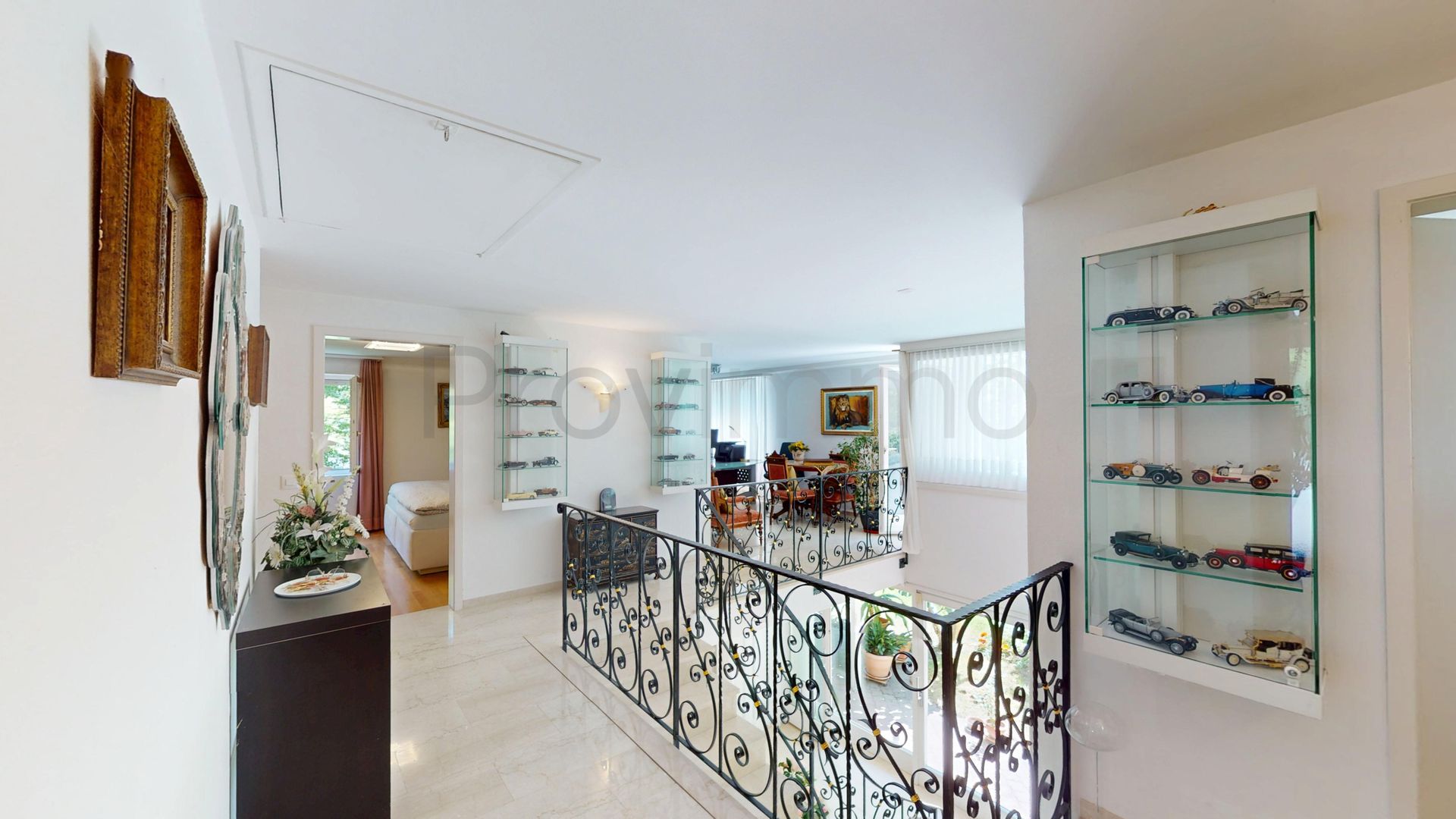 Die Raumaufteilung erstreckt sich über drei Ebenen. Im Obergeschoss, das gleichzeitig den Eingang bildet, befinden sich die Schlafräume sowie eine grosszügige Nasszelle mit Doppellavabo, Dusche und Eckbadewanne. Im Erdgeschoss überzeugt der offene Wohn- und Essbereich durch Grosszügigkeit und Helligkeit – ein stilvolles Cheminée sorgt dabei für eine besonders gemütliche Atmosphäre. Ergänzt wird das Raumangebot durch eine grosse Küche, ein Gäste-WC sowie einen Wirtschafts- und Technikraum. Das Untergeschoss bietet einen grossen Kellerraum mit viel Stauraum.