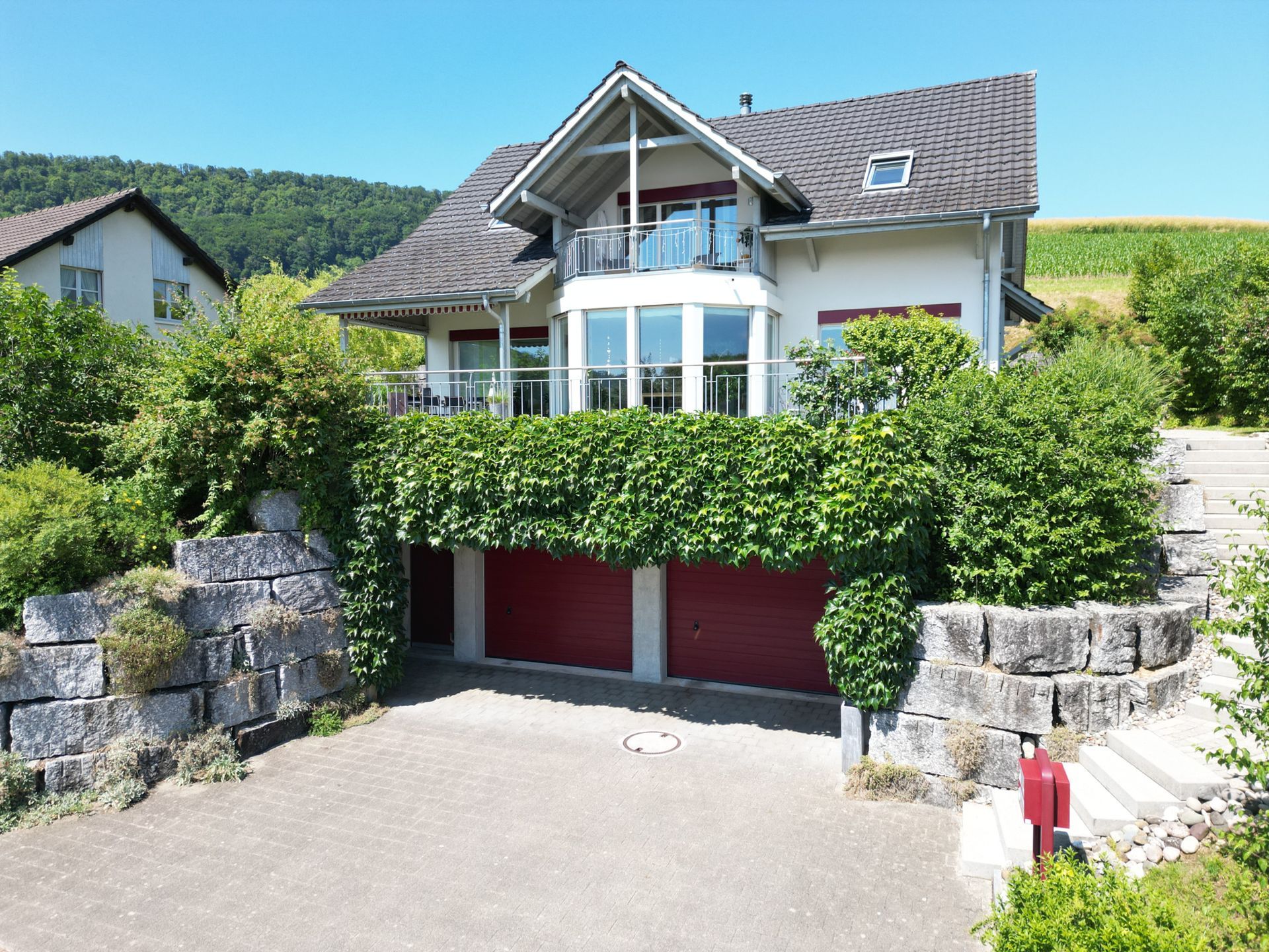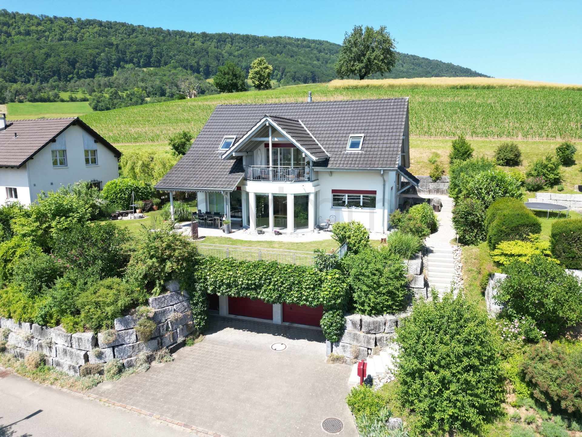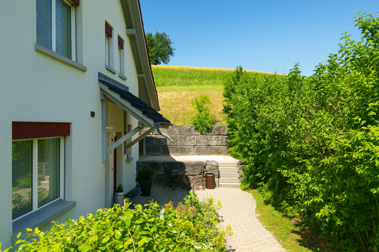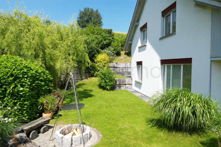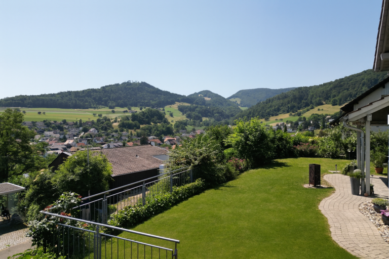 Bereits beim Betreten des Grundstücks wird klar: Hier erwartet Sie ein Zuhause, das den Alltag hinter sich lässt. Das grosszügige Grundstück von rund 750 m² eröffnet vielfältige Möglichkeiten für Gartenliebhaber und Familien, die sich im Freien entfalten möchten. Die erhöhte Lage verschafft dem Haus eine beeindruckende Fernsicht über das Dorf, die umliegenden Hügel und weit darüber hinaus – ein Panorama, das seinesgleichen sucht und jeden Tag aufs Neue fasziniert.