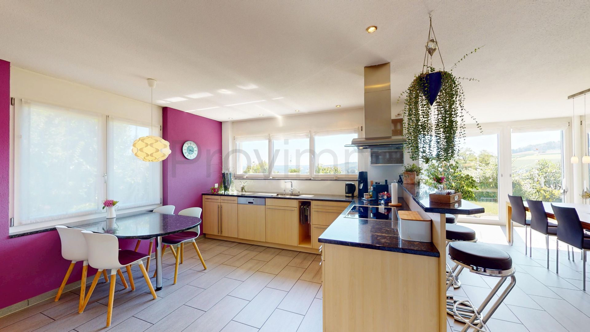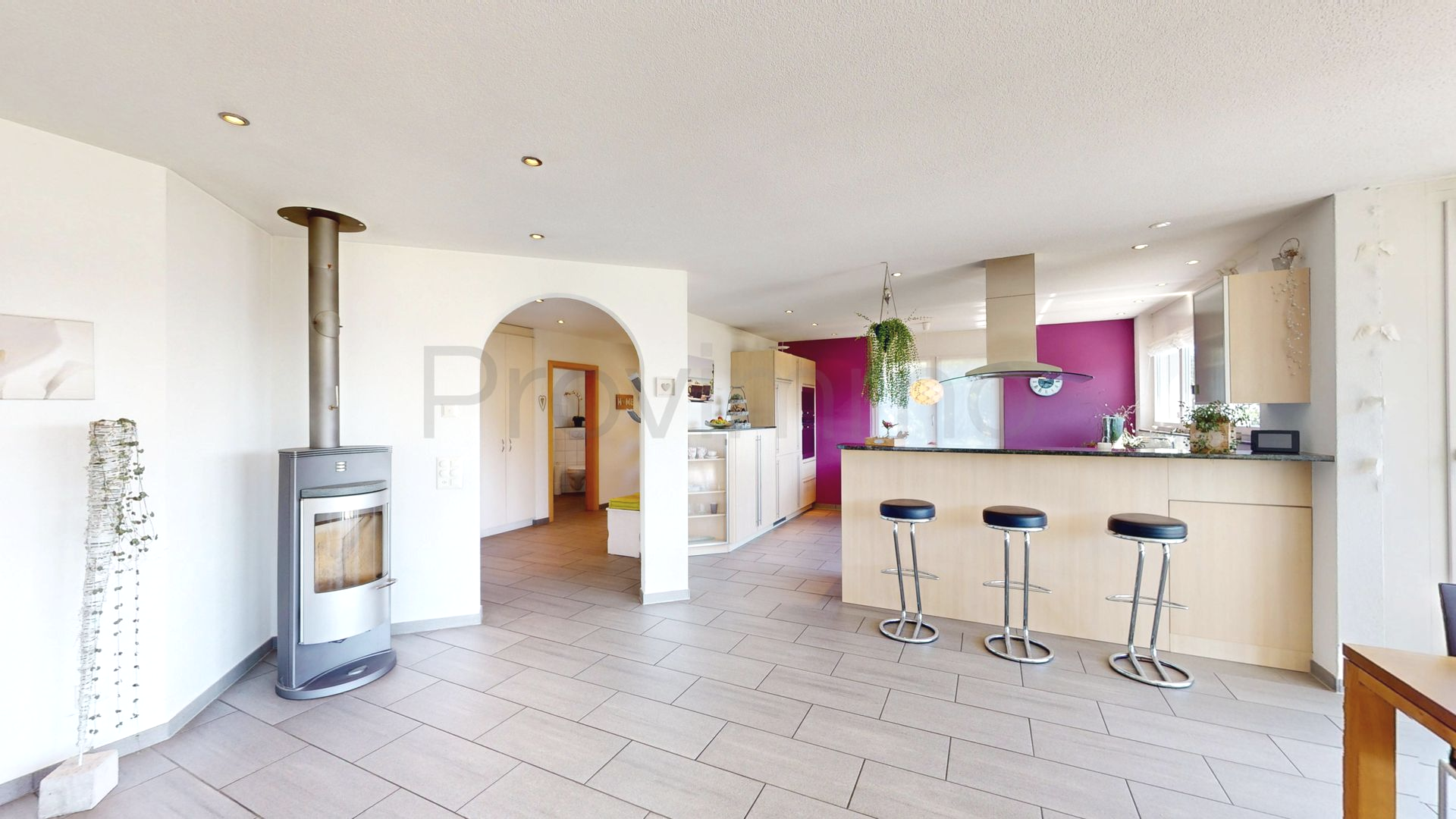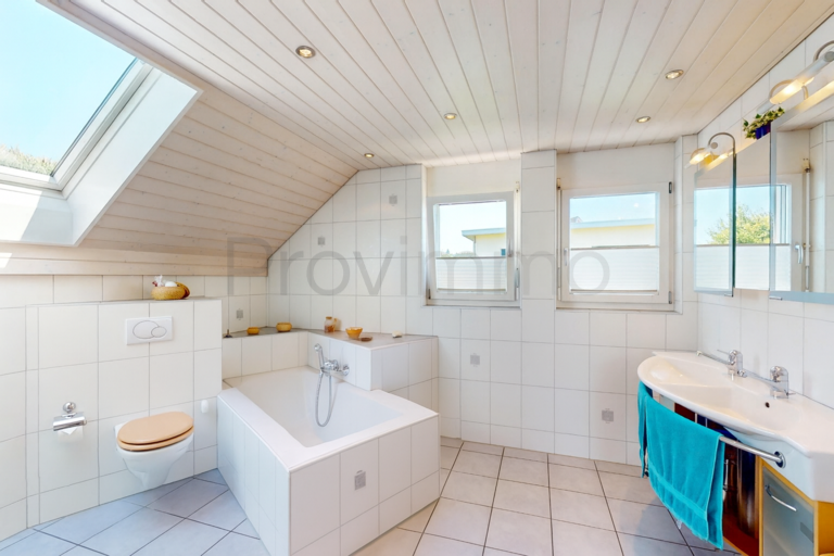 Die offene Küche ist praktisch angelegt und bietet viel Platz für gemeinsame Kochmomente. Zwei Bäder sowie weitere Nebenräume sorgen dafür, dass auch grössere Familien komfortabel wohnen können. Insgesamt stehen 7.5 Zimmer zur Verfügung – ob als Schlafzimmer, Büro oder Hobbyraum, hier findet jedes Bedürfnis seinen Platz.