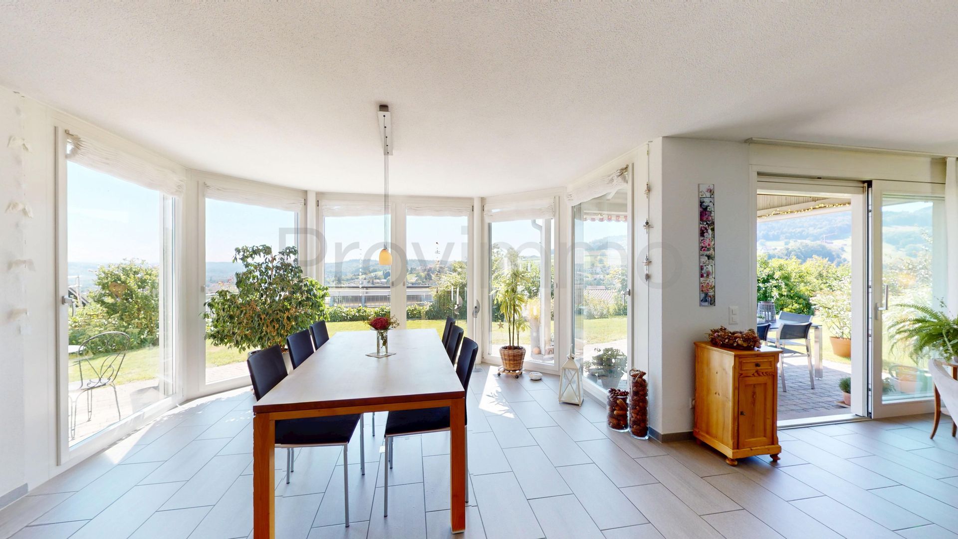 Im Erdgeschoss empfängt Sie ein einladender Wohn- und Essbereich, der durch seine Offenheit und die grossen Fensterflächen beeindruckt. Das Tageslicht flutet die Räume und verstärkt das Gefühl von Weite und Freiheit. Von hier aus haben Sie direkten Zugang zu Terrasse und Garten – ideal, um den Blick in die Ferne schweifen zu lassen.