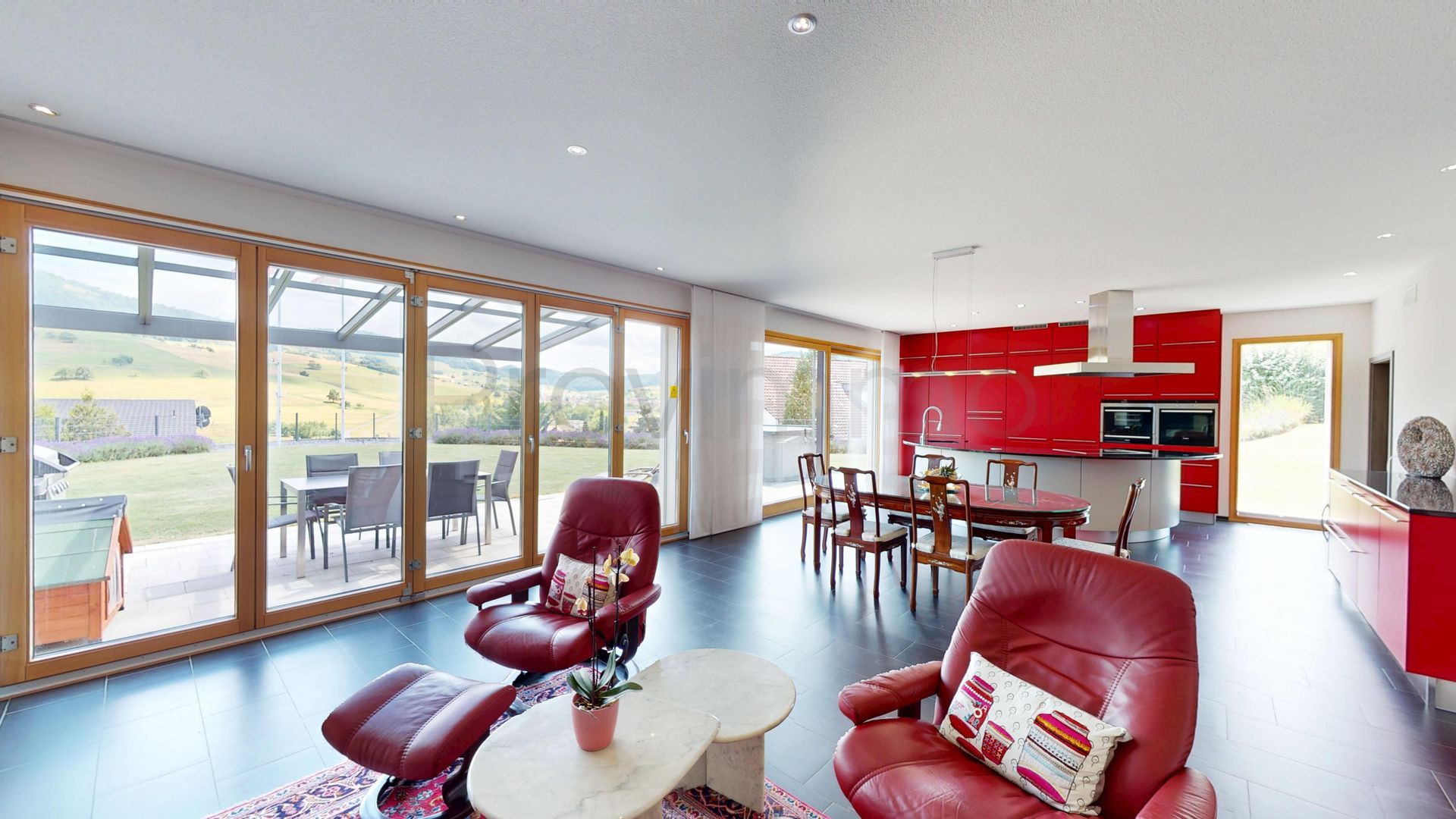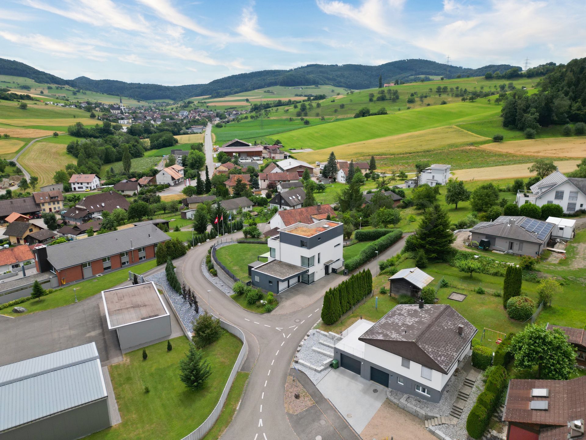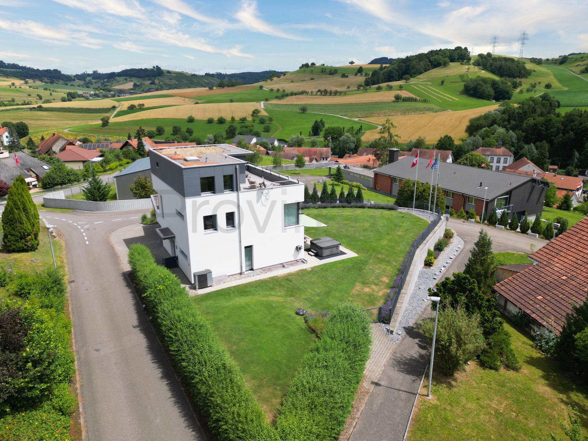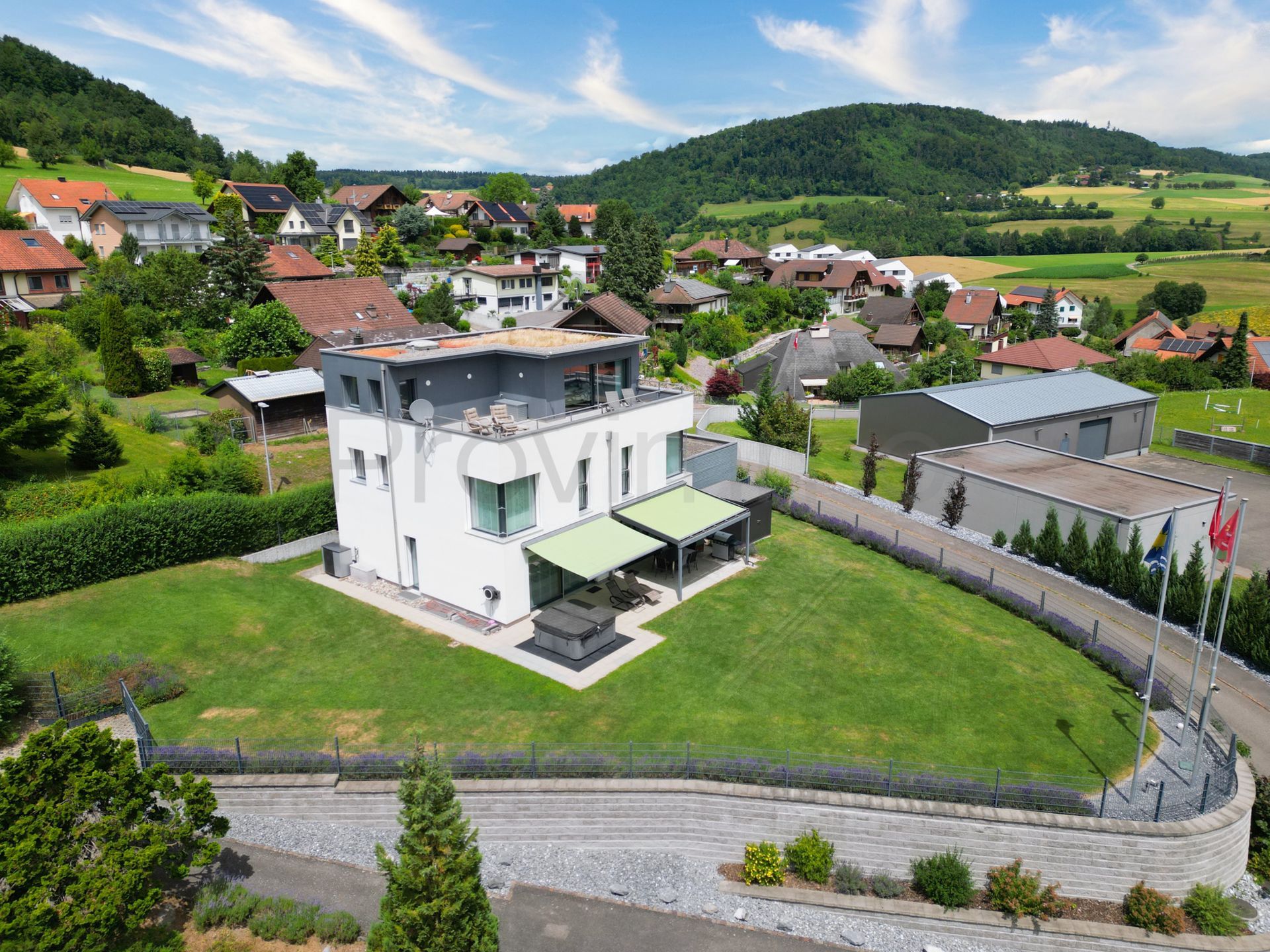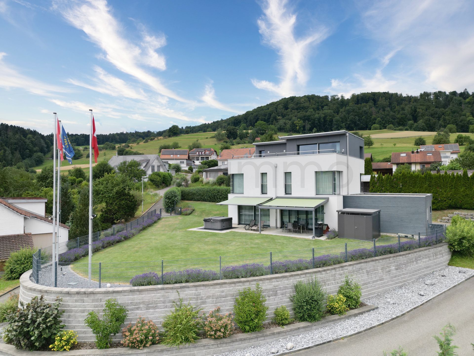 Diese repräsentative 6½-Zimmer-Villa vereint moderne Architektur, nachhaltiges Bauen und grosszügigen Wohnkomfort auf eindrucksvolle Weise. Inmitten eines ruhigen Einfamilienhausquartiers am sonnigen Südhang gelegen, bietet sie auf einer 1069 m² grossen Parzelle absolute Privatsphäre mit atemberaubender Aussicht ins Grüne und höchste Lebensqualität.