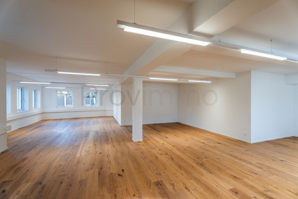 Ein stilvoller Echtholz-Eichenparkett und grosse Fenster mit elektrischen Storen schaffen ein hochwertiges Arbeitsambiente, welches Mitarbeiterzufriedenheit und Produktivität fördert. Die Fläche verfügt über eine praktische Nische, in der bei Bedarf eine Teeküche eingerichtet werden kann, sowie ein separates WC für zusätzlichen Komfort.