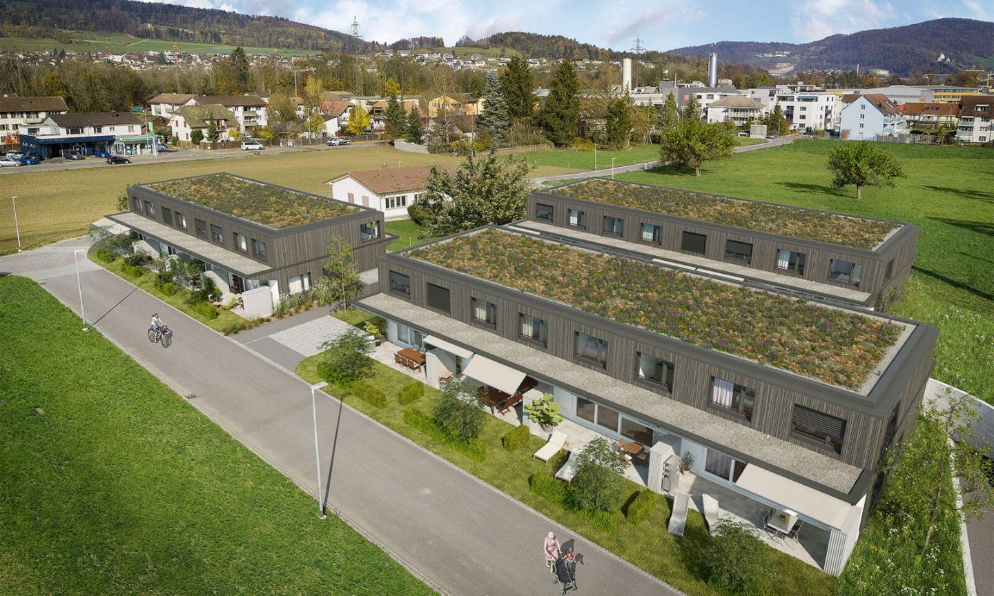 In Rupperswil entstand auf einem grosszügigen, 2’781 m² umfassenden Grundstück eine moderne und architektonisch überzeugende Überbauung mit insgesamt zwölf Reiheneinfamilienhäusern. Die Liegenschaft befindet sich an ruhiger Lage und bietet ein attraktives Wohnumfeld für Familien und Paare, die Wert auf Qualität, Nachhaltigkeit und zeitgemässen Wohnkomfort legen.