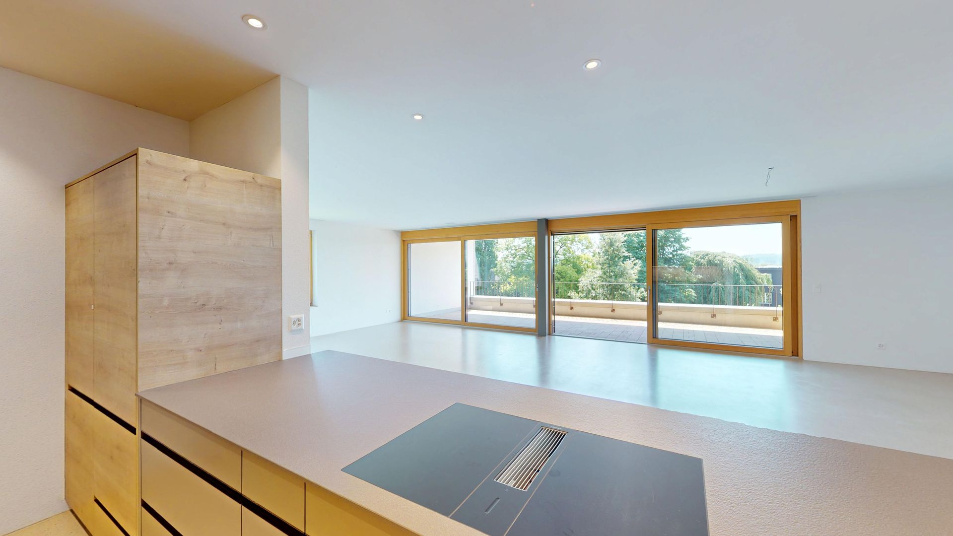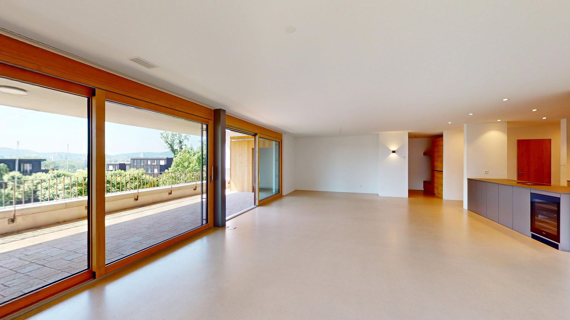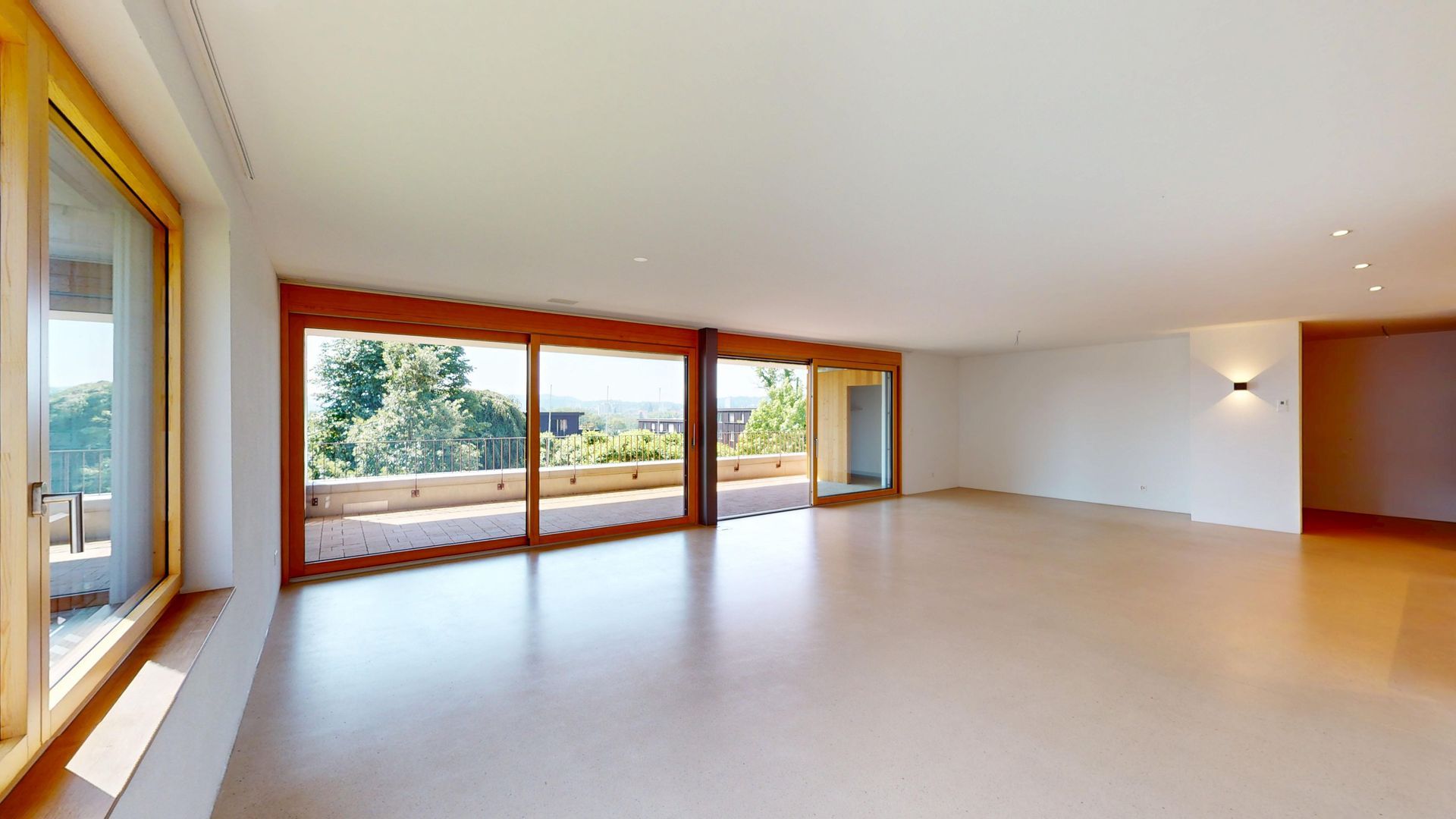 Der grosse Wohn- und Essbereich bietet reichlich Platz für individuelles Möblieren und öffnet sich direkt zur 33m2 grossen, gedeckten Terrasse mit herrlichem Ausblick über Rombach bis hin nach Aarau. Die drei Schlafzimmer überzeugen durch ihre Grösse von jeweils 15 m2 bis 20 m2 – viel Raum für Rückzug, Entfaltung und kreative Einrichtungsideen. Besonders das Elternschlafzimmer, das über ein eigenes Bad en Suite mit Badewanne und Dusche verfügt, bietet höchsten Komfort. Zusätzlich steht ein separates Gäste-WC mit Dusche zur Verfügung. Der hochwertige Anhydritboden zieht sich nahtlos durch alle Wohnräume und sorgt mit seiner schlichten, warmen Ausstrahlung für ein einheitliches, ruhiges Wohngefühl. Gleichzeitig ist er äusserst robust, pflegeleicht und bestens geeignet für den modernen Alltag. Die grosszügige Raumgestaltung und die durchdachte Ausstattung schaffen ein behagliches Ambiente, das keine Wünsche offenlässt. Hier vereinen sich Wohnqualität, Stil und Funktionalität zu einem harmonischen Ganzen.