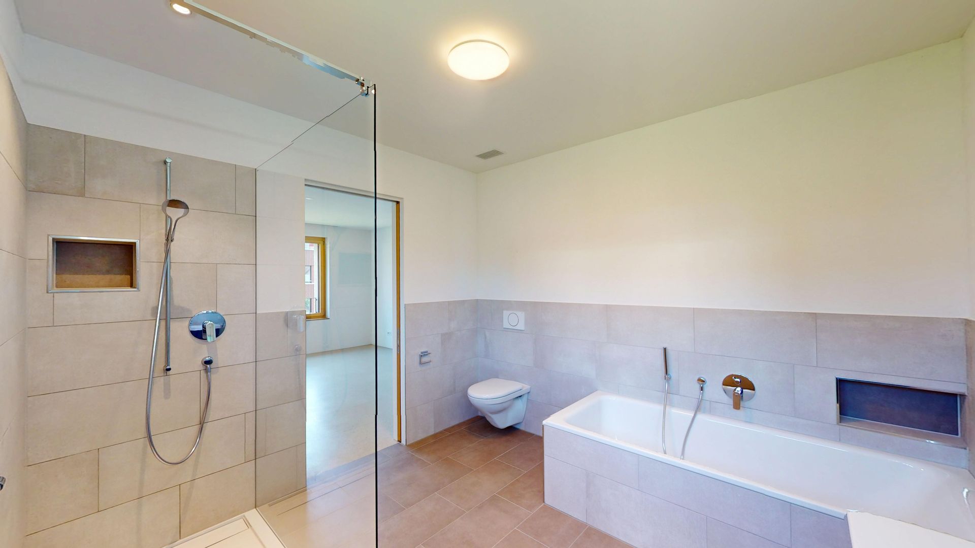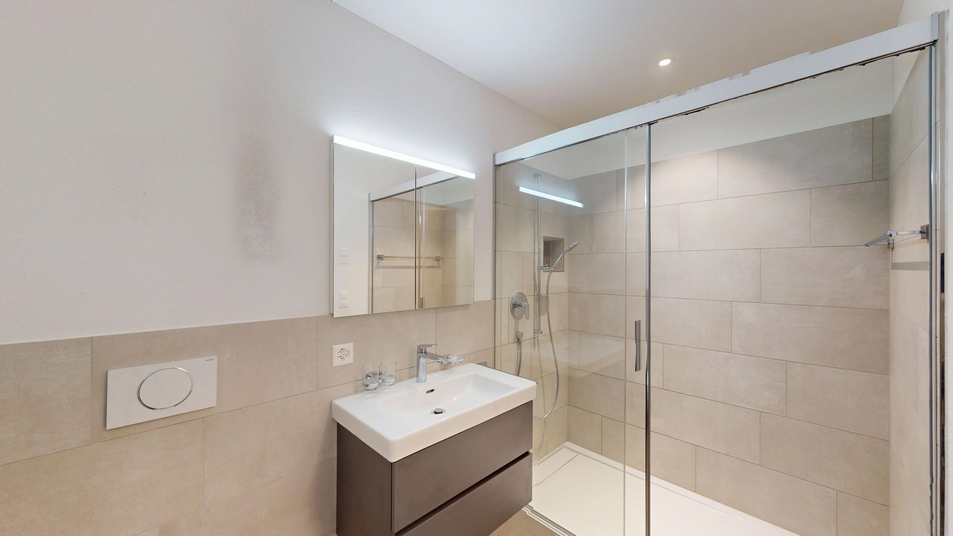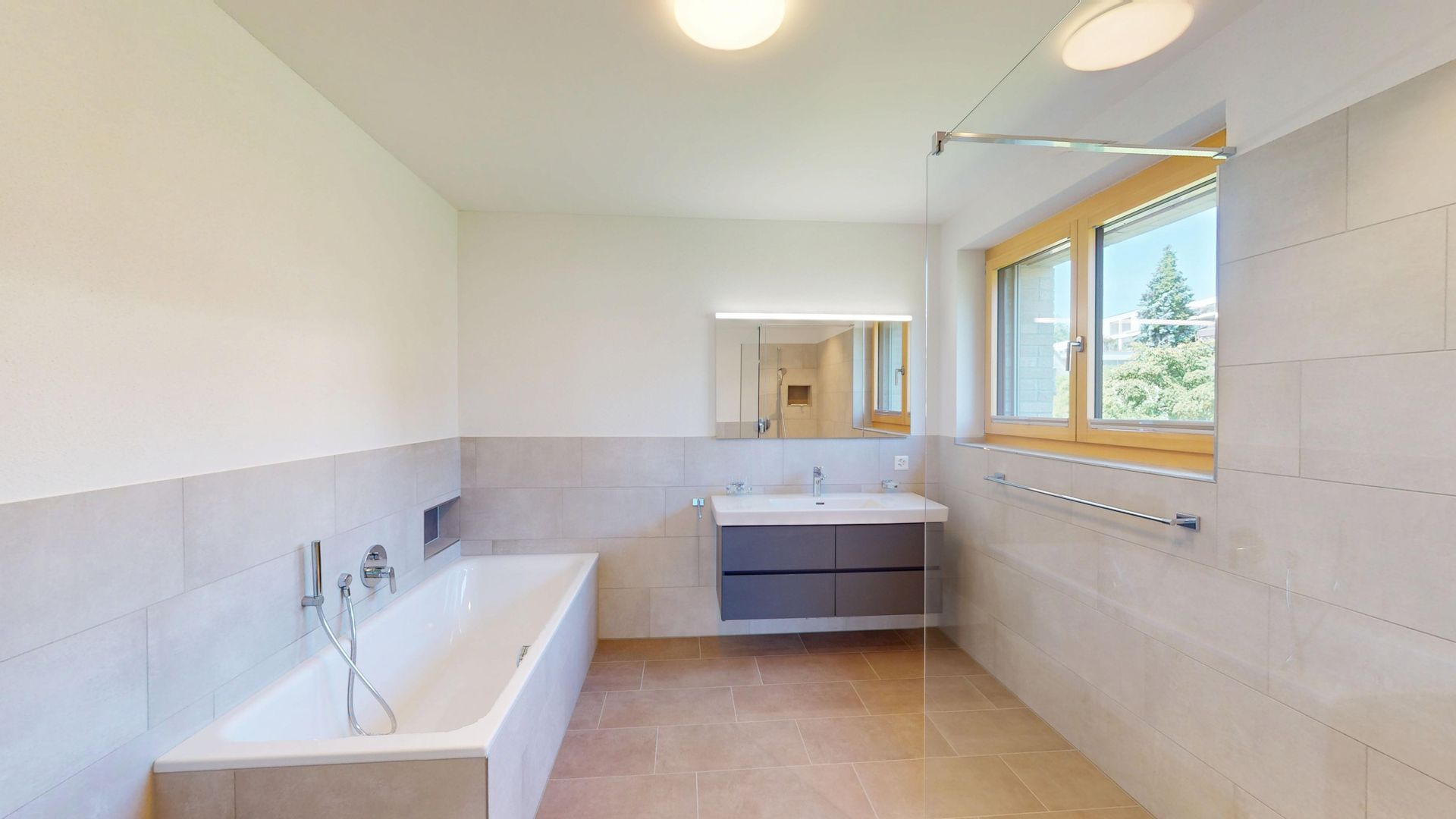 Der grosse Wohn- und Essbereich bietet reichlich Platz für individuelles Möblieren und öffnet sich direkt zur 33m2 grossen, gedeckten Terrasse mit herrlichem Ausblick über Rombach bis hin nach Aarau. Die drei Schlafzimmer überzeugen durch ihre Grösse von jeweils 15 m2 bis 20 m2 – viel Raum für Rückzug, Entfaltung und kreative Einrichtungsideen. Besonders das Elternschlafzimmer, das über ein eigenes Bad en Suite mit Badewanne und Dusche verfügt, bietet höchsten Komfort. Zusätzlich steht ein separates Gäste-WC mit Dusche zur Verfügung. Der hochwertige Anhydritboden zieht sich nahtlos durch alle Wohnräume und sorgt mit seiner schlichten, warmen Ausstrahlung für ein einheitliches, ruhiges Wohngefühl. Gleichzeitig ist er äusserst robust, pflegeleicht und bestens geeignet für den modernen Alltag. Die grosszügige Raumgestaltung und die durchdachte Ausstattung schaffen ein behagliches Ambiente, das keine Wünsche offenlässt. Hier vereinen sich Wohnqualität, Stil und Funktionalität zu einem harmonischen Ganzen.