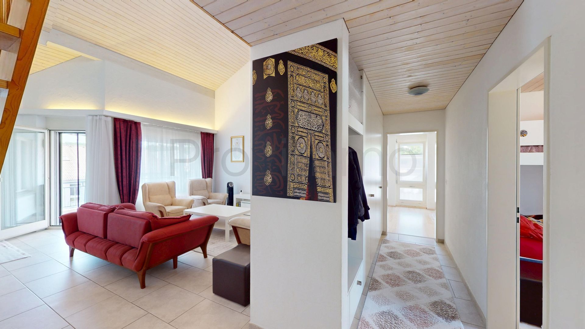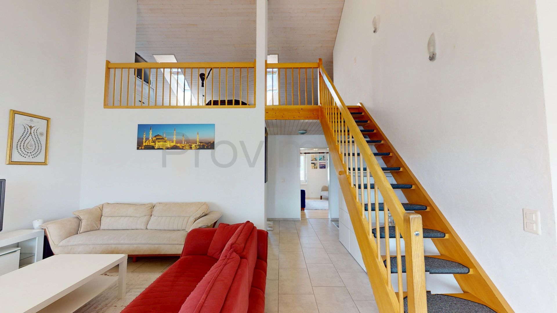 Der grosse, sonnige Balkon mit 15 m² Fläche lädt zu gemütlichen Grillabenden, entspannten Sonntagsfrühstücken oder einfach zum Durchatmen nach einem langen Arbeitstag ein. Innen überzeugen die Räume mit klaren Linien, viel Licht und einem behaglichen Ambiente. Die offene Galerie schafft Weite und verleiht dem Wohnbereich eine besondere architektonische Note.