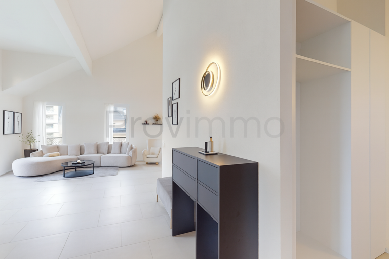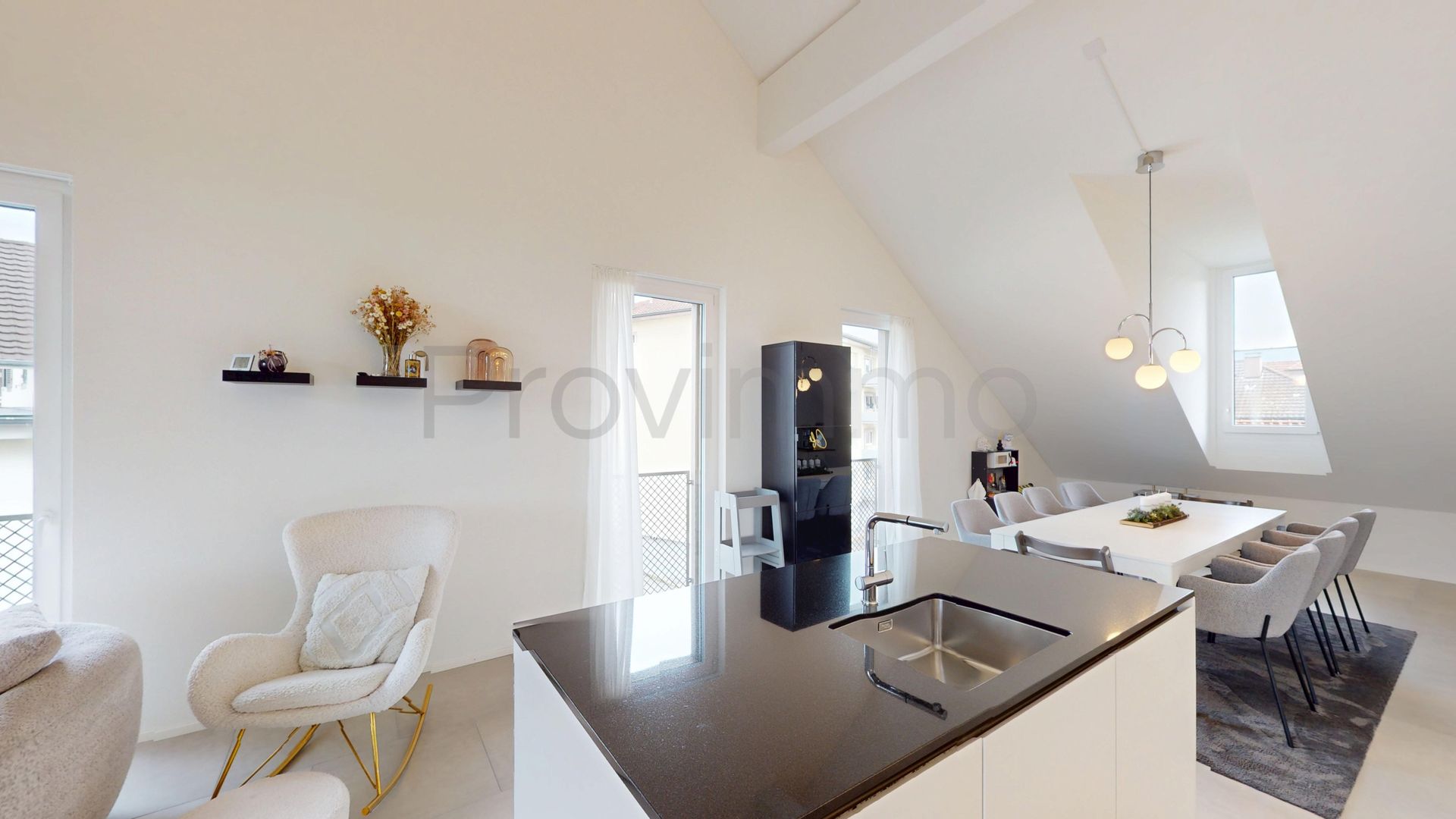 Diese aussergewöhnliche 4.5-Zimmer Dachwohnung vereint grosszügiges Wohnen, moderne Architektur und ein hohes Mass an Privatsphäre auf eindrucksvolle Weise. Die Liegenschaft mit insgesamt nur acht Wohneinheiten garantiert ein ruhiges, stilvolles Wohnumfeld mit einer angenehmen, überschaubaren Nachbarschaft.