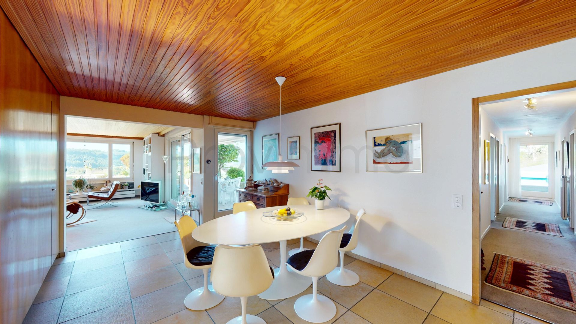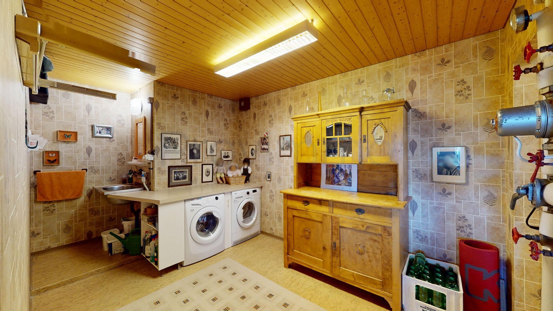 Die Raumaufteilung umfasst neben dem grosszügigen Wohn- und Essbereich vier gut dimensionierte Zimmer, die flexibel als Schlaf-, Arbeits- oder Hobbyräume genutzt werden können. Das Badezimmer ist mit Badewanne und separater Dusche ausgestattet und lädt zu entspannten Momenten ein. Ein separates Gäste-WC sorgt für zusätzlichen Komfort für Familie und Besuchende. Der praktische Haushaltsraum mit Waschturm und Waschbecken erleichtert den Alltag, während der angrenzende Technikraum die Pooltechnik beherbergt und zusätzlichen Stauraum bietet.