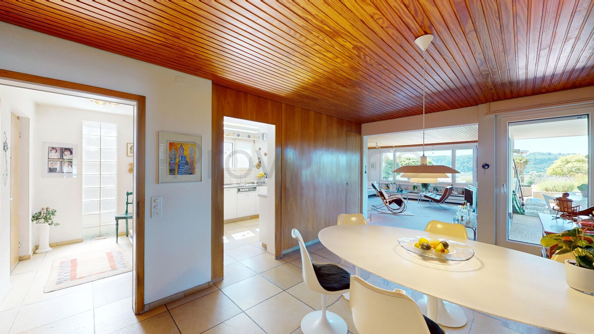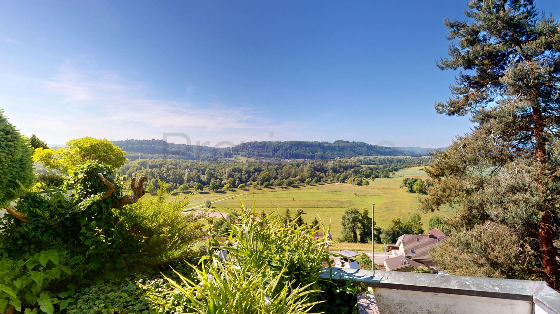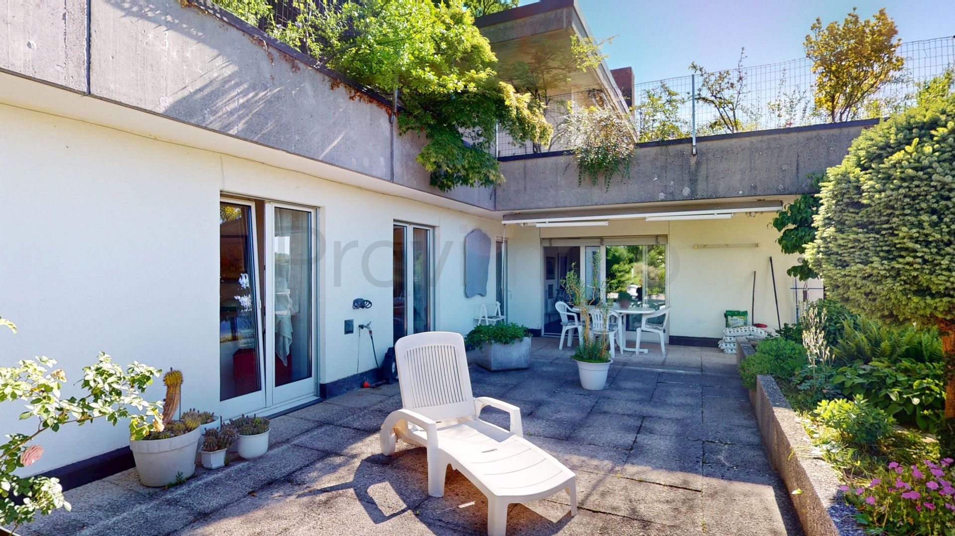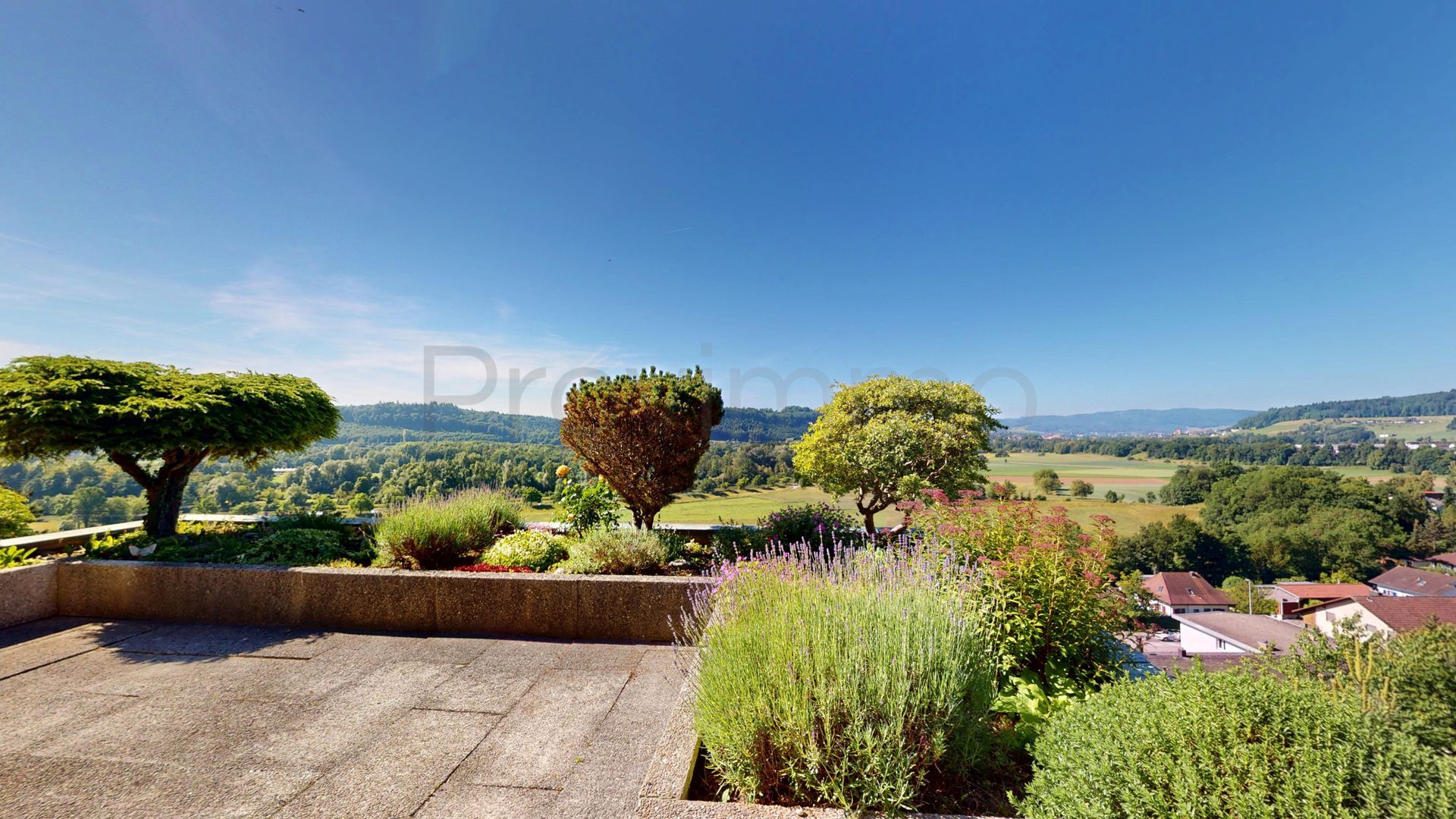 Der Aussenbereich ist ein Highlight für sich: Die Terrasse sowie der auf der Westseite gelegene und direkt durch den hinteren Teil der Wohnung zugängliche Pool laden zu entspannten Stunden im Freien ein. Sei es zum Sonnenbaden, Spielen mit Kindern oder geselligen Grillabenden mit Freunden. Die Lage garantiert ganztägig eine sehr gute Besonnung, während die Hanglage eine atemberaubende Weitsicht über die umliegende Landschaft ermöglicht und zugleich Privatsphäre schafft.