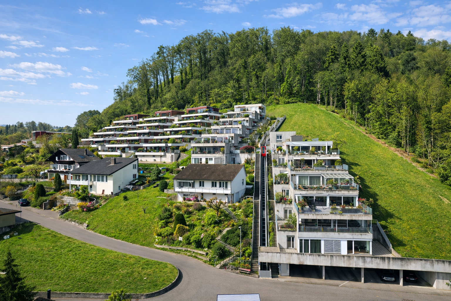 Der Zugang zur Wohnung erfolgt komfortabel und barrierefrei – ein Treppenlift führt bis vor die Haustüre und erleichtert den Alltag zusätzlich. Zwei gedeckte Abstellplätze runden das attraktive Gesamtangebot ab und sorgen für praktische Parkmöglichkeiten direkt bei der Liegenschaft; diese sind je zu einem Preis von CHF 35'000.– dazu zu erwerben.