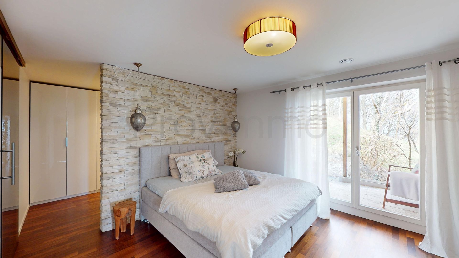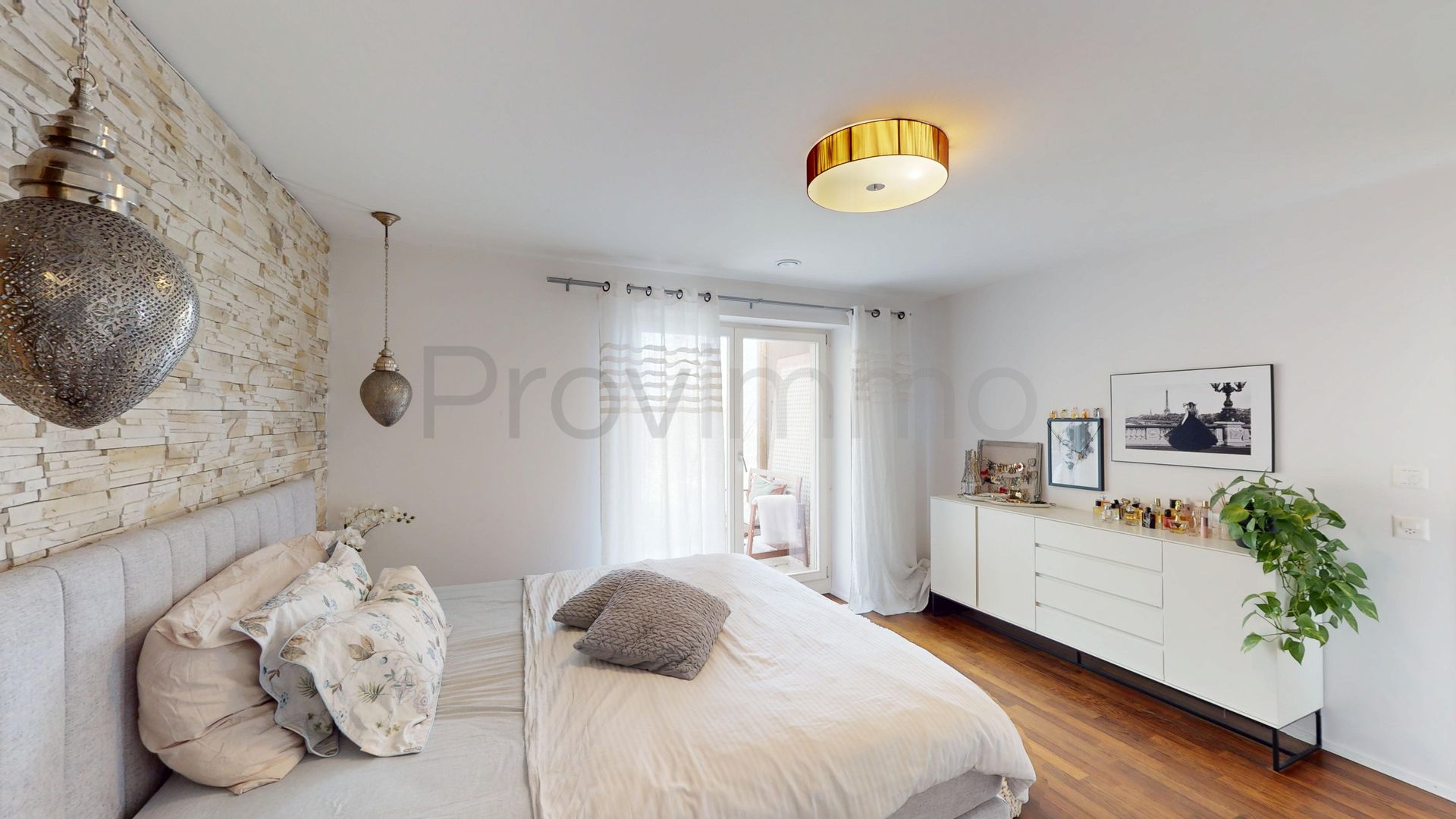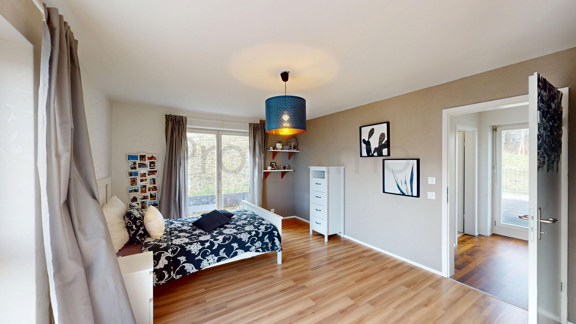 Der private Rückzugsbereich ist durchdacht gestaltet: Das Elternzimmer verfügt über ein Bad en suite, eine Ankleide sowie einen separaten Sitzplatz, der zusätzliche Ruhe und Privatsphäre bietet. Ein Gäste-WC ergänzt den Komfort auf dieser Ebene. Auf der zweiten Wohnebene befinden sich eine weitere Nasszelle sowie zwei geräumige Zimmer. Auch diese Ebene verfügt über eine eigene Terrasse und bietet vielseitige Nutzungsmöglichkeiten als Kinder-, Gäste- oder Arbeitsbereich mit einem hohen Mass an Eigenständigkeit.